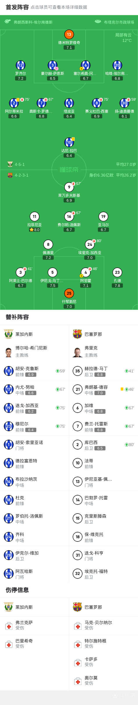 上半场进行到第40分钟,不幸的是,巴塞罗那的巴尔德在防守时因受伤问题无法继续坚持,不得不被队友换下,给球队带来一丝不稳定的因素。而此时,莱加内斯的一次进攻中,球员倒在了禁区内,但裁判却选择了不理会,让现场气氛更加紧张。